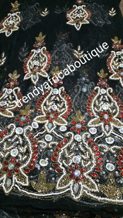 • Quality Net George Wrapper for African/Nigerian big events. VIP black beaded and stoned net George in 6.7 yards total