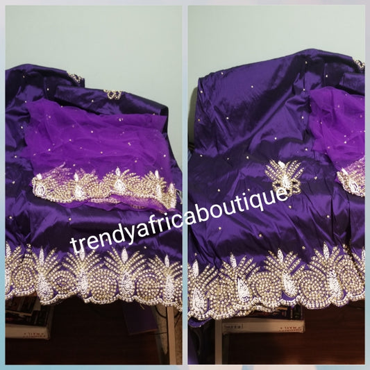 • Sale sale; Nigerian Traditional George wrapper. Hand Beaded/stones design in purple/purple 1.8 matching net blouse. Igbo/delta bride outfit. Small-George.