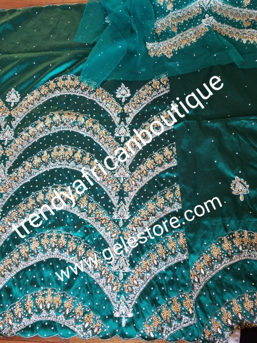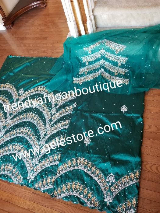 • Ready to ship:  Exclusive design Teal Green VIP hand beaded and stoned Nigerian traditional Celebrant taffeta Silk George wrapper with matching net for blouse. Niger/Delta/Igbo women wrappers Sold as set of 2 wrapper +1.8yds blouse. Quality Guaranteed