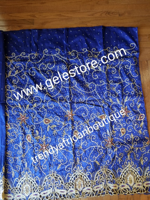 Ready to ship. Royal blue VIP Celebrant Nigerian women George wrapper. Niger/Igbo/delta quality beads and dazzled crystal stones for special occasion. 2.5yds + 2.5yds + 1.8yds net blouse. Feel the difference in quality!! Exclusive design for Bride.