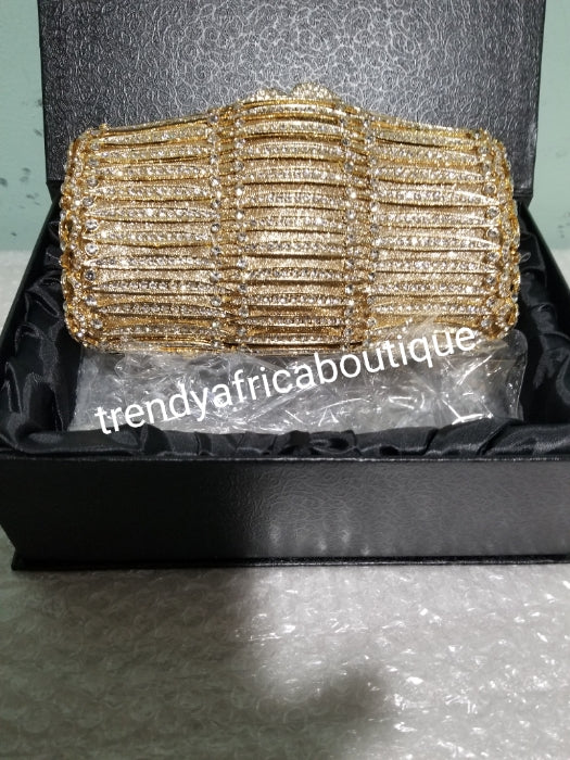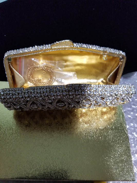 Quality evening hand clutch. Crystal Clutch/purse. All over dazzling crystal stones. All over Gold crystal stones