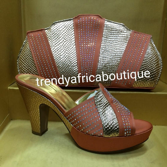 Size 42 Peach/gold Italian matching platform shoe and hand clutch. Quality Italian made shoe and bag. Sold as a set