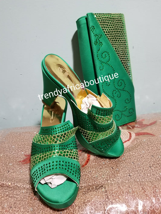 • SALE SALE: Italian made platform slipper/purse set in beautiful Green. Embellised with crystal stones available in size 38 and 40 only.