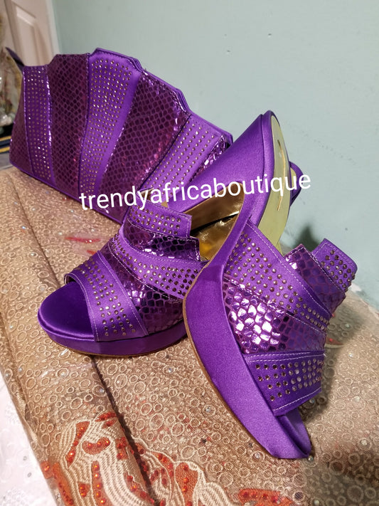 Size 38 Purple Italian Slipper platform shoe and matching purse. Sold as a set. Price is for the set