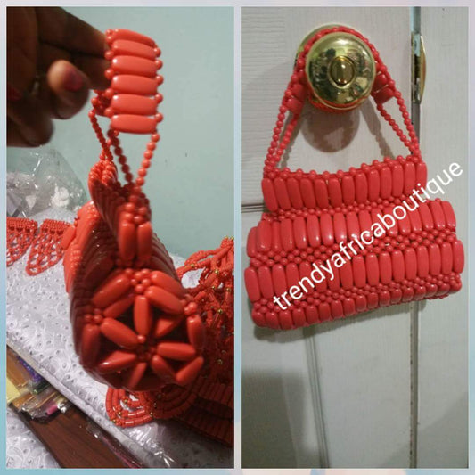 Edo/Benin Bridal hand beaded Coral clutch/purse. Nigerian traditional wedding coral hand clutch. Coral-necklace