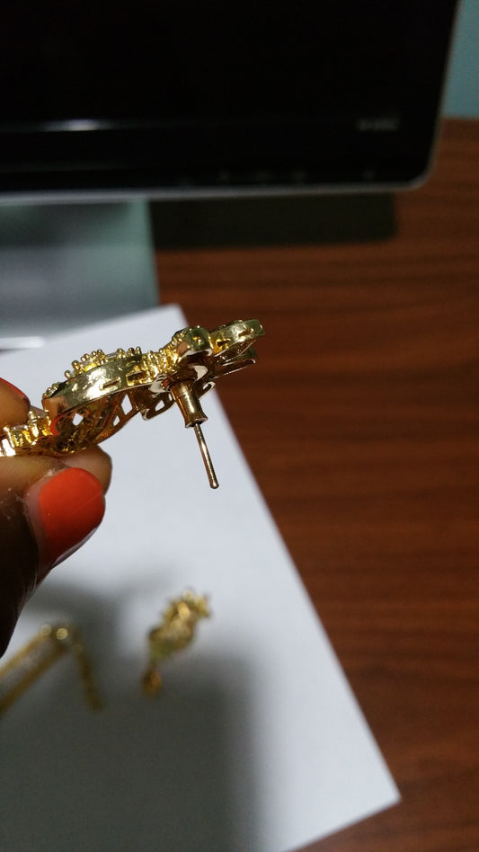 • 22k electroplating jewelry set with CZ dazzling stones 2pcs set. Drop earrings