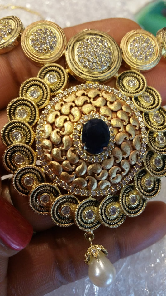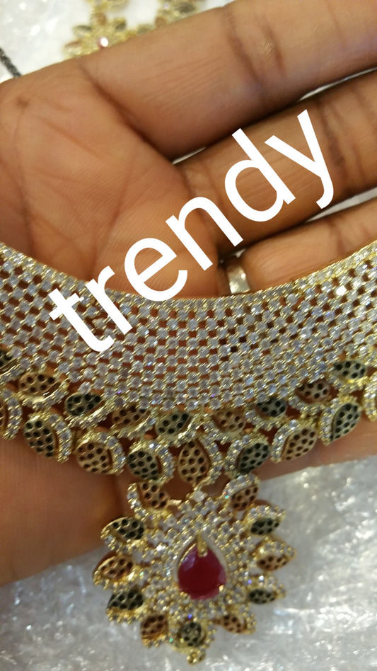 22k electroplated Silver set with CZ stones Jewelry set. Silver choker/matching earrings. Sold as a set