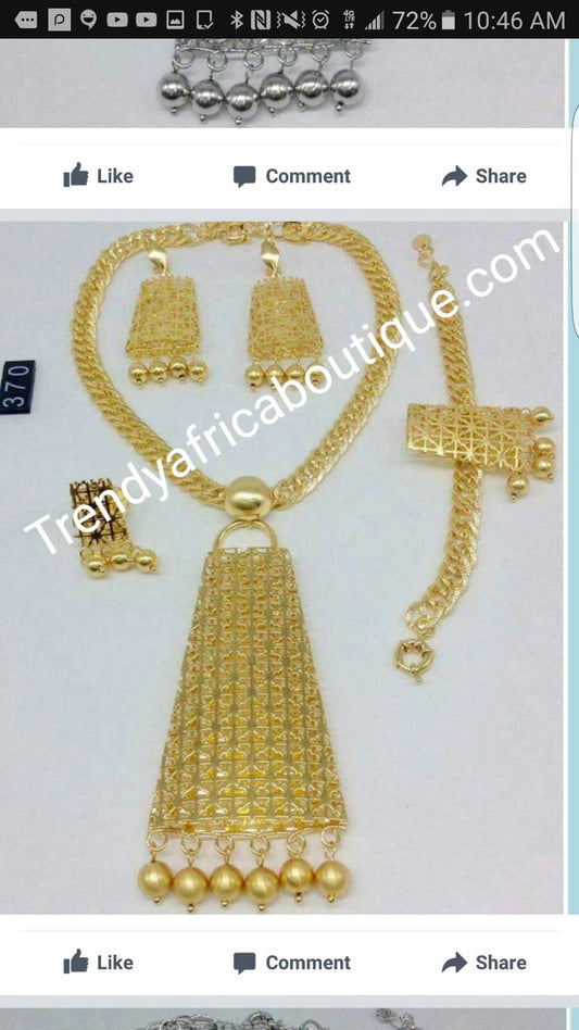 • Quality 18k Gold plated choker Jewelry set. 4pc costume set. bracelet; earrings and ring. Sold as a set