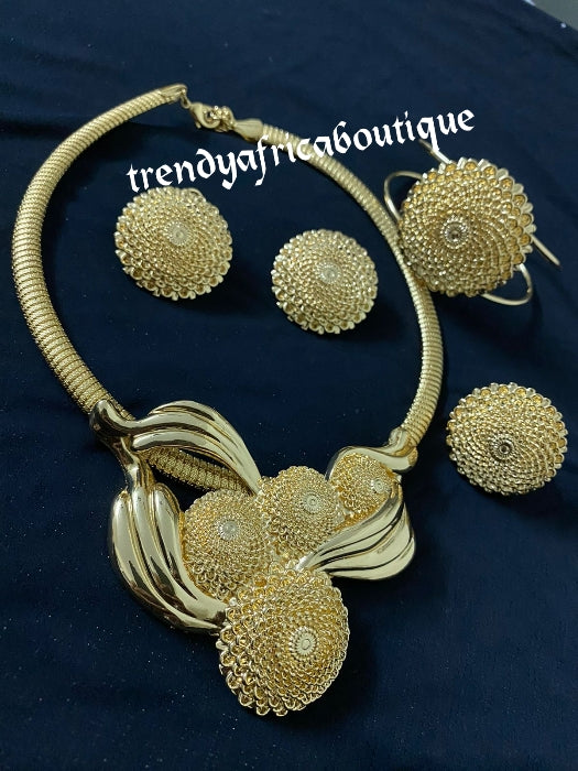 • Elegant Dubai 4pcs 18k electroplated choker necklace, matching earrings, bangle & adjustable ring. hypoallergenic plating. Sold as a set and price is for the set. As shown in display photo.