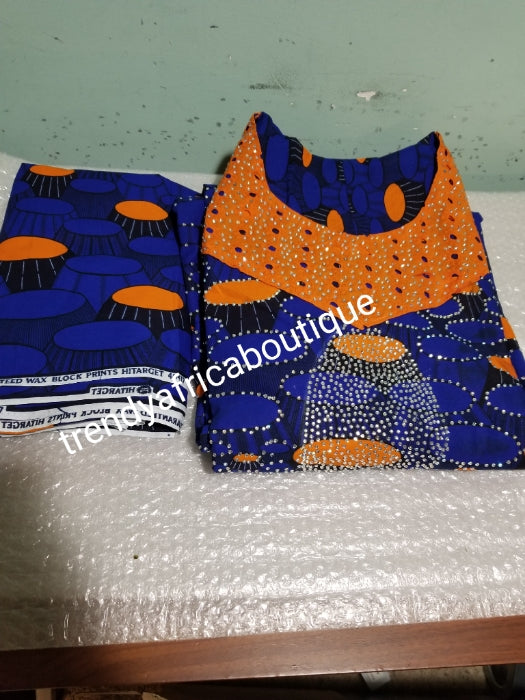 • Sale sale: Ankara-dress, embellished with shinning Swarovski stones to perfection! Fit Burst 44" and 59" lenght shoulder to floor. Made with Quality hitarget Ankara. Comes with a matching headtie. Latest Ankara Kaftan dress