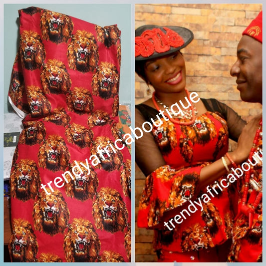 Sale; Original quality Red Isi-agu Igbo traditional wrapper use by men or women. Sold per yard, price is for one yard. Nigerian/igbo ceremonia fabric. Soft texture, authentic isi-agu fabric for Igbo title ceremony. Lion head fabric