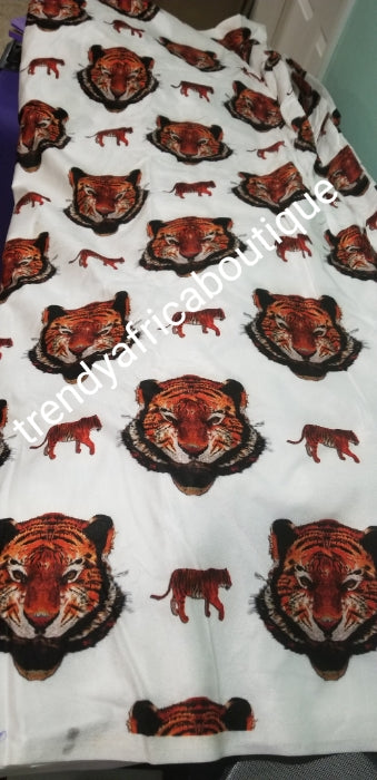 New arrival Isi-agu Igbo traditional/ceremonial fabric for men or womem. Tiger head fabric. Sold per one yard. Price is for a yard. Can be use for wrapper, blouse or shirt for men. White background with black/red tiger head