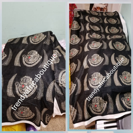 Sale; Original quality Black/Gold/white tiger head/ Isi-agu wrapper, Igbo traditional wrapper use by men or women. Sold per yard, price is for one yard. Nigerian/igbo ceremonia fabric. Soft texture, authentic isi-agu fabric. Igbo Tiger head fabric.