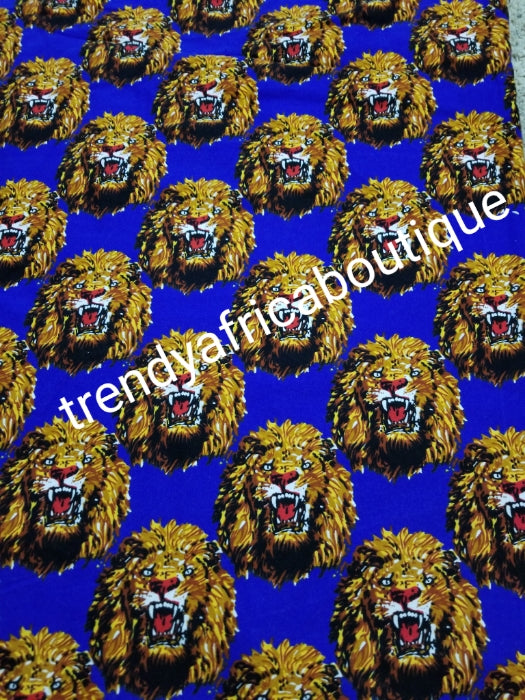 Sale; Original quality Royal blue/gold Isi-agu Igbo traditional wrapper use by men or women. Sold per yard, price is for one yard. Nigerian/igbo ceremonia fabric. Soft texture, authentic isi-agu fabric for Igbo title ceremony. Lion head print fabric