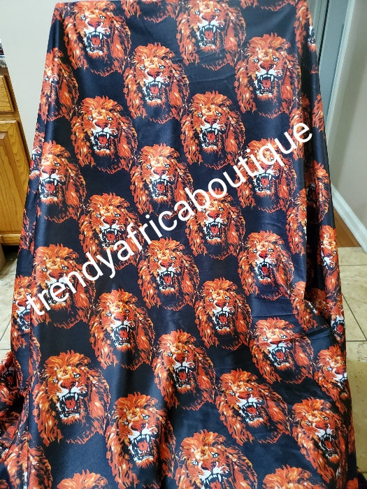 New arrival Isi-agu Igbo traditional/ceremonial fabric for men or womem. Lion head print. Sold per one yard. Price is for a yard. Can be use for wrapper, blouse or shirt for men. Black/Gold
