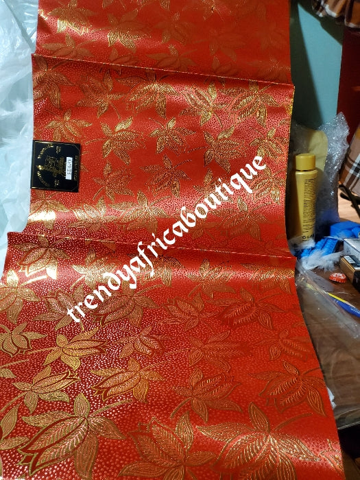 Red/gold 2 in 1 pack Sago gele head tie for Nigerian head wrap. Beautiful design. Soft texture, easy to tie into beautiful Nigerian party gele. Excellent quality. Sold as a park