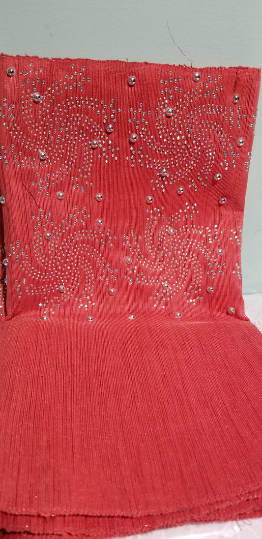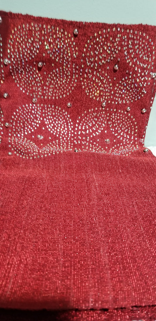 Extra wide Red Be-dazzled aso-oke Gele for a more classic head wrap. Beautiful Red color. Nigerian Aso-oke Gele in original quality woven in Nigeria. Contact for aso-ebi order