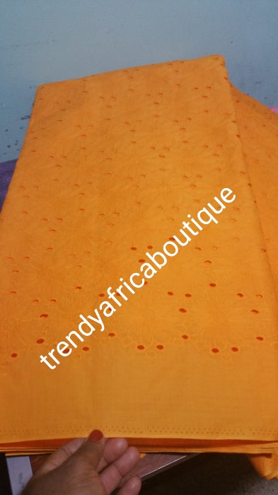 Sale: Orange color Quality dry swiss lace fabric for African traditional native wear. Sold per 5yds.. price is for 5yds