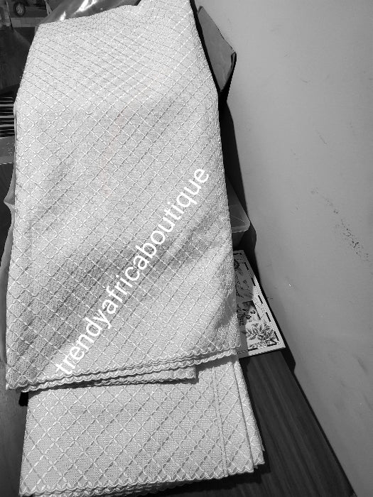 Exclusive design Quality polish cotton swiss lace fabric for Nigerian Men native outfit. Soft quality fabric. Can be use for agbada/3pc outfit for men. Sold per 5yds. Price is for 5yds. Pure white!