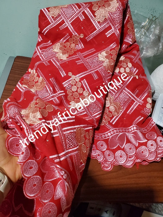 • Special Offer: Exclusive swiss embroidery lace fabric with stones. Sweet Red. Soft texture. Sold per 5yds and price is for 5 yards. Original swiss voile Lace