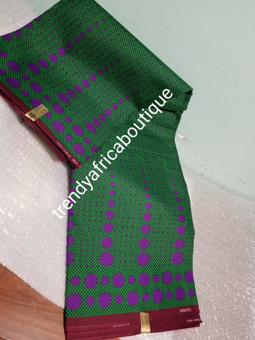 Hitarget afrikanischer/Ankara-Wachsdruckstoff. Verkauft pro 6 Yards. Der Preis gilt für 6 Yards weiche Textur, ausgezeichnete Qualität. Grün/lila