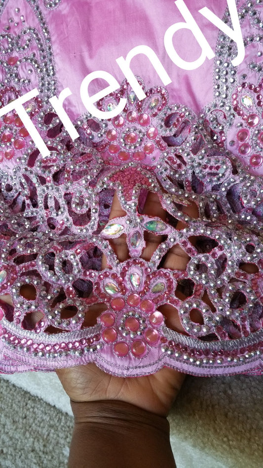 • Ausverkauf: George-Umschlag aus Taftseide mit lila Stickereien und Steinsteinen für nigerianische Frauen. 5 Yards Umhüllung + 1,8 Yards passendes Netz für Bluse. Verkauft als Set. Stickereien/Perlen und Steinarbeiten. Small-George, aso-ebi George