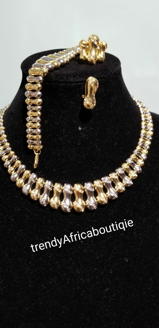4 Stück. 18 Karat vergoldetes und versilbertes Kostümschmuckset. Hochwertige Beschichtung, hypoallergen. Afrika/nigerianisches Partyschmuck-Set.