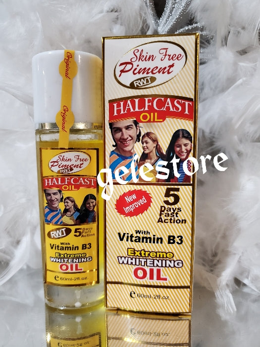 • RWT Skin Free Piment Half Cast Oil 5 Tage schnelle Wirkung mit Vitamin B3. EXTREME WHITENING OIL 60ML X 1. Formulierter Arganextrakt, Vit. A, B & E, GLUTATHION & ARBUTIN, FRUCHTSÄURE, AHA. Extra aufhellendes Öl, 60 ml x 1 Flasche.