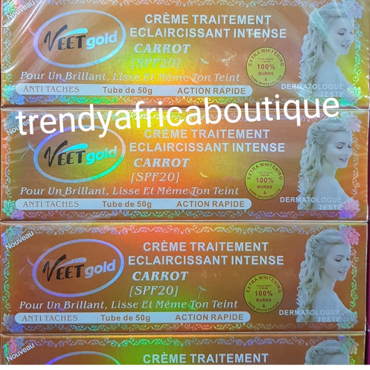 Veet Gold Intensiv-Bleaching-Tubencreme mit Karottenextrakten mit Lichtschutzfaktor 20. 50 g können als Gesichtscreme oder gemischt verwendet werden