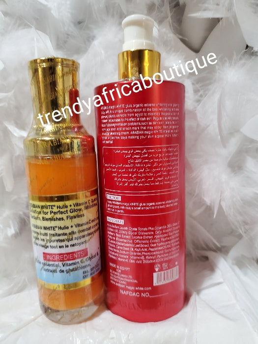 2 in 1 Arabisches Zauberweiß. Gluta Bio-Körpermilch für leuchtende Haut + arabisches weißes Serum/Öl mit Vitamin. C. Hydrochinonfrei!! Ausgezeichnete Bleaching-Therapie.