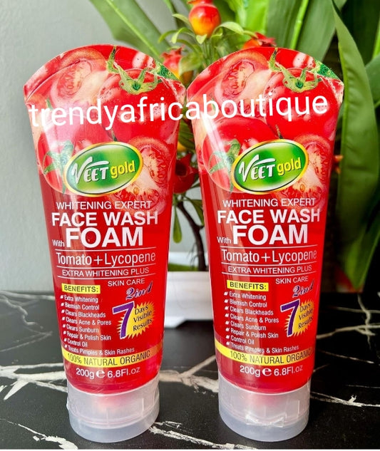 X 1 VeetGold Whitening Tomato Foaming Face Wash. 2in1-Formel. 100 % natürliche Bio-Formel. 200 g x 1 und der Preis gilt für eins.