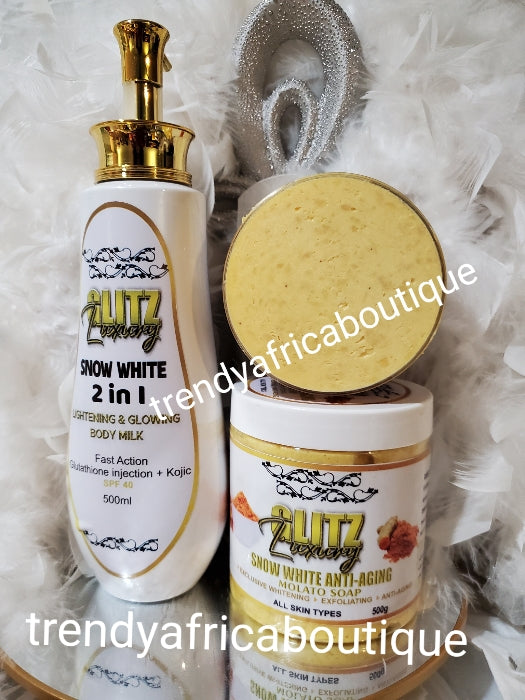 NOCH EIN BANGA!! Glitzluxury Snowwhite Anti-Aging Molato Soap und die Snow White 2n1 aufhellende Körperlotion 🔥🔥🔥👌. Kombination aus Aufhellern und Behandlung!
