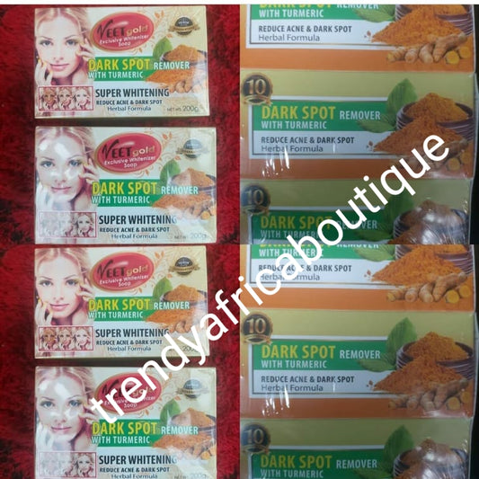 • Exklusive Veet Gold-Seife: Aufhellung, dunkle Flecken und Akne-Entferner mit Kurkuma-Extrakten, 200 g x 1. Gesichts- und Körperwaschmittel mit Kräuterformel.