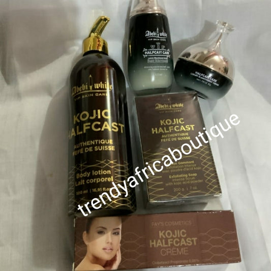 5er-Set Abebi White Kojic Half Cast Bodylotion, + Serum + Gesichtscreme + Seife + korrigierende Tubencreme. 100 % originell und effektiv!!