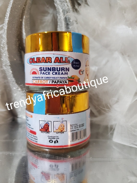 Back in stock!! CLEAR ALL Sun burn & spots day and night face cream with carrot & papaya extract. With sun protection. 50g x 1. New jar & super active