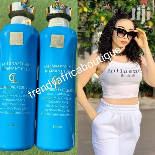 Lait Snapchat diamant blue body lotion 500ml+ serum. Achieve uniform stainless and natural whitening skin glow with modern whitening natural ingredients. Glutathion + collagen