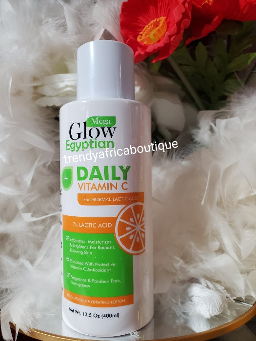 • New products alert: Mega glow egyptian daily Vitamin C with Lactic acid. Brightening, exfoliating and hydrating body lotion. 400ml x 1👌