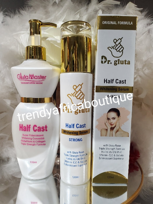 • 2pcs. Gluta Master half cast whitening body lotion and anti dark spots serum.Triple strenght formula with Gluta Rose, Vitamin E, C.