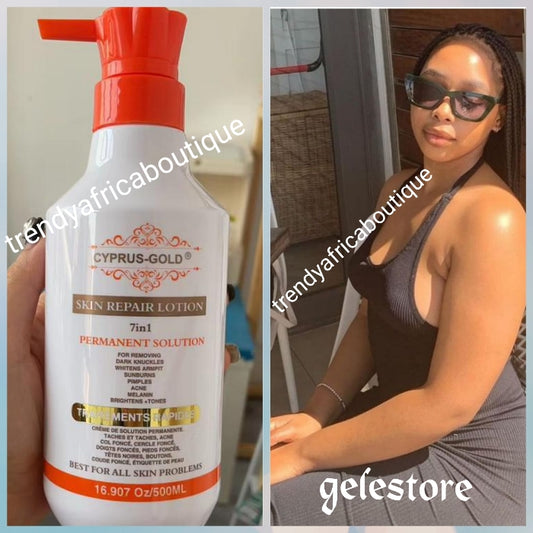 2pcs. Banga: Cyprus-gold skin Repair body lotion. Permanent solution 7 in 1 action Anti sun burn, Acne, whiten armpits and more. 500m & Cyprus-gold exfoliating shower wash