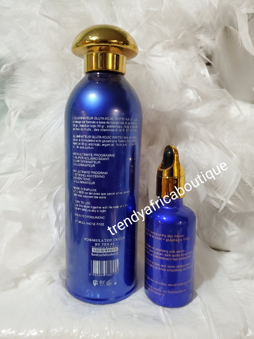 • 2ps Abebi white Gluta kojic illuminateur whitening body lotion + serum. Strong whitening body milk. 400ml x1 bottle 💯 AUTHENTIC