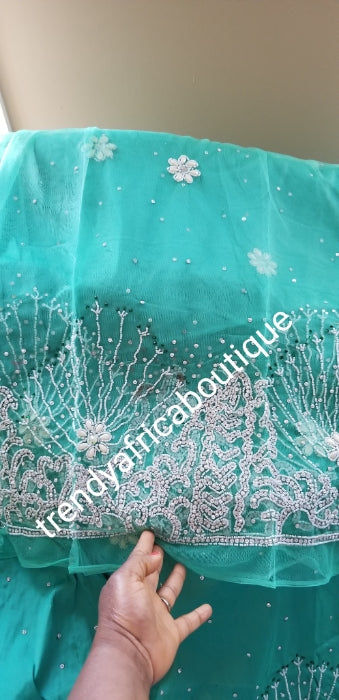 Clearance: New arrival Mint Green beaded/stoned George wrapper. Top quality silk George for special Nigerian Ceremony. Come 5yds + 1.8yds net matching blouse.Niger/igbo/Delta George wrapper