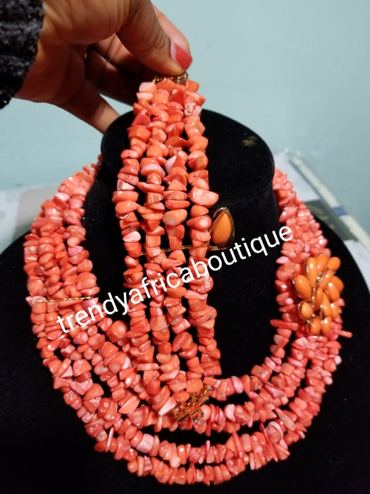 • Clearance item: coral beaded necklace set. Made with coral chips. Multi roll Edo/Nigerian traditionsl coral necklace