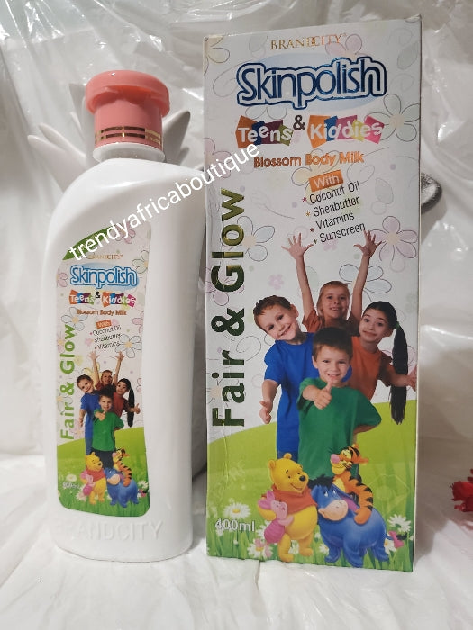 2 in 1 set: Skin polish Teens & Kiddies blossom body lotion with coconut oil, sheabutter, vitamins and sunscreen production. FAIR & GLOW. 400ml + liquid body wash 1000mlx1 1 from BRANDCITY