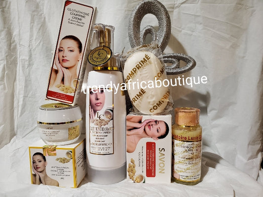 5pcs. Set: Original lait teint Diamant glutathion comprime whitening set: body lotion 500ml, face cream 30g, soap, serum & tube cream. Formulated with glutathion tablet, alpha arbutin, Vitamin C to give you that natural whitening glow