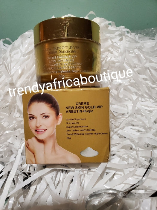 • New skin Gold VIP advanced lighting Night face cream 50g. + new skin gold face and body soap. Formulated with kojic + Arbutin