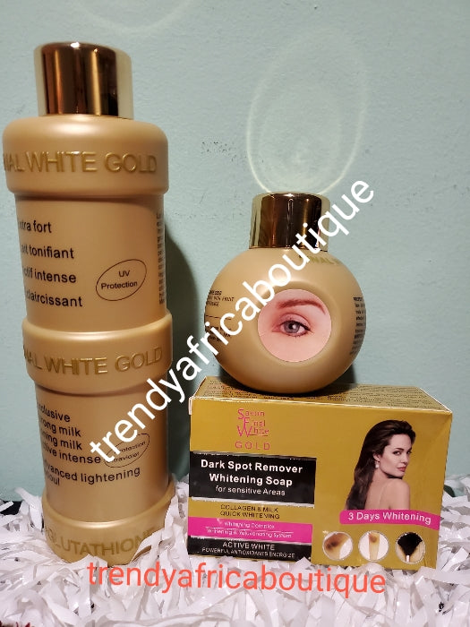 • BACK IN STOCK Authentic final white Gold lotion set: lotion 500ml,  face cream and soap 200g. formulated with glutathion & natural ingredients + plant extracts. Fast acting Whitening/brightening the skin safely. 100% satisfaction