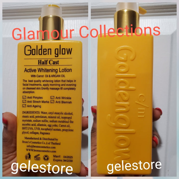 Allergice to carrot oil, please dont use. Golden Glow body lotion super moisturizing and hydrating. Gives you that milky yellow under tone.