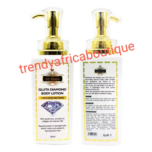 5D.Gluta.Diamond Body Lotion. Repairs/treatment for stretch marks, sun burn, unify your complexion. 7 Days Extra Whitening. Highly recommended for Damaged skin.500ml bottle