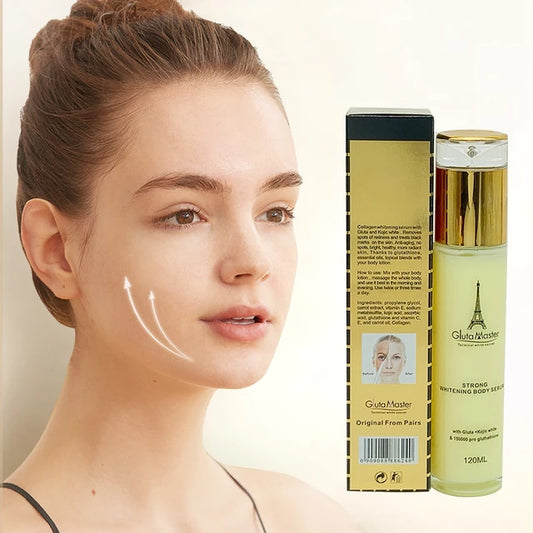 • Gluta master terminal white secret serum with glutathion + kojic white. Anti stains and marks. X 1 bottle. 120ml bottle. Only mix with body lotion or cream.