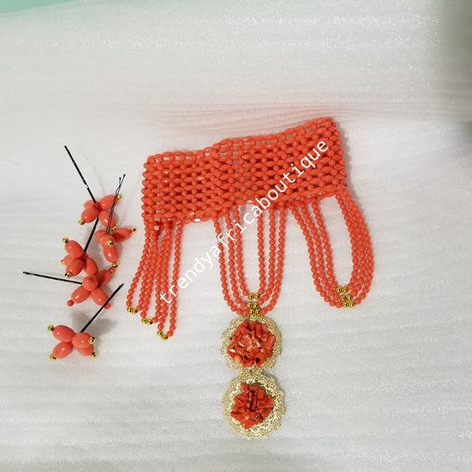 Back in stock: Bridal-accessories for Nigerian Traditional wedding ceremony. coral Head piece for Bride with chain extender at the back for easy adjustments, require personal assembling. Edo/Bini Traditionall wedding